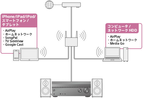 AVレシーバーはAirPlayに対応しています。iPhone/iPad/iPodあるいはiTunesライブラリの音声/音楽コンテンツを再生して楽しむことができます。