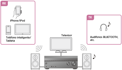 Puede recibir audio desde un iPhone/iPod, smartphone o tableta que tengan la función BLUETOOTH y escucharlo a través del receptor.