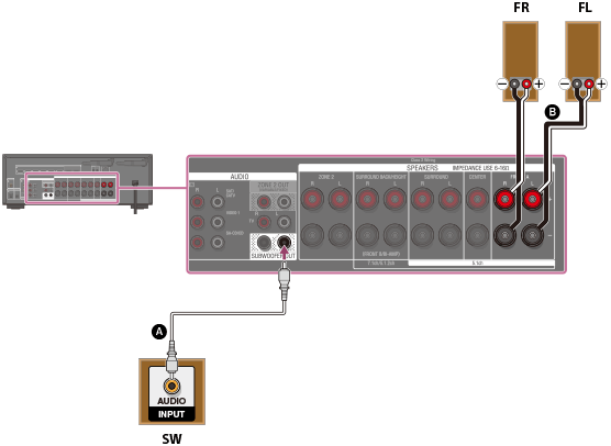 - Raccordez les enceintes avec une impédance nominale de 6 ohms à 16 ohms.