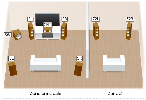 - Il existe des restrictions relatives aux sources audio que vous pouvez utiliser dans la Zone 2 ou la zone HDMI. Pour en savoir plus, reportez-vous à « Entrées disponibles pour chaque zone ».
