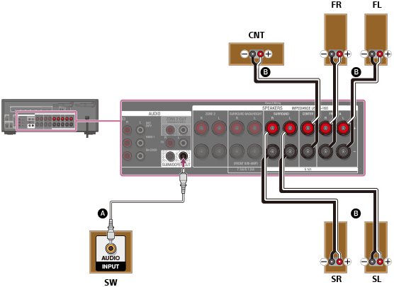 Pour en savoir plus sur la méthode de raccordement des câbles d’enceinte à l’ampli-tuner, reportez-vous à « Méthode de connexion des câbles des enceintes ».
