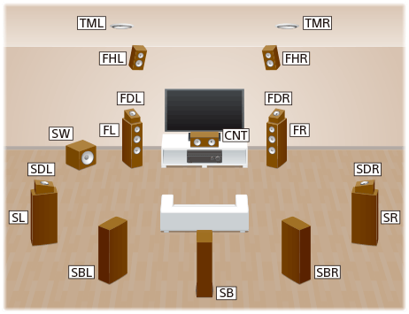 | FL | Enceinte avant gauche | Reproduit les sons à partir des canaux avant droit/gauche. |