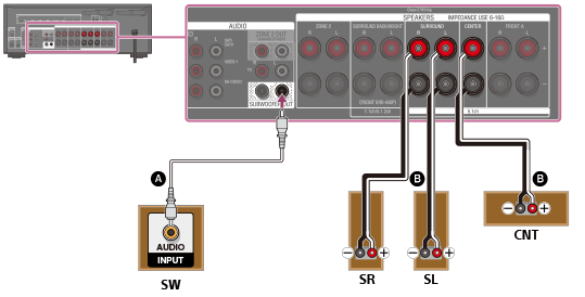 Vous pouvez améliorer la qualité sonore des enceintes avant en raccordant séparément les amplificateurs intégrés à des enceintes d’aigus et à des enceintes de graves dans une configuration de bi-amplificateur.