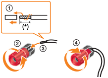 De même, veillez à serrer étroitement les torons tressés des enceintes et à les insérer de manière sécurisée dans les bornes des enceintes.