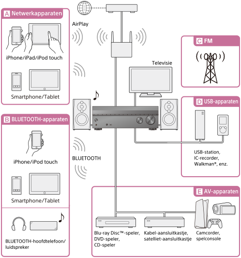 U kunt audio van een iPhone/iPod touch of andere smartphone/tablet via BLUETOOTH naar dit apparaat zenden.