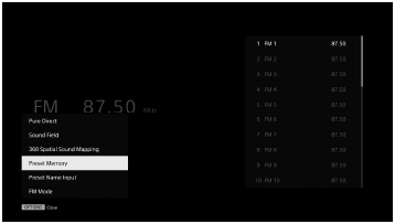 Selectați [Preset Memory] din meniul de opțiuni.