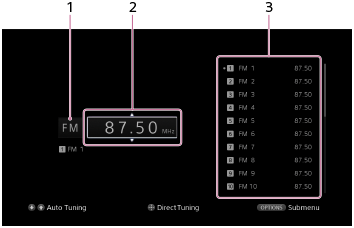 - Sélectionnez [Listen] - [FM TUNER] ou [AM TUNER] dans le menu principal.