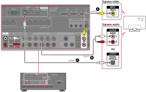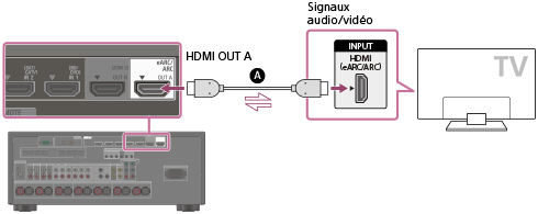 Avec un seul câble de connexion HDMI, vous pouvez écouter le son du téléviseur des enceintes raccordées à l’ampli-tuner bien que ce dernier envoie le son et la vidéo vers le téléviseur.
