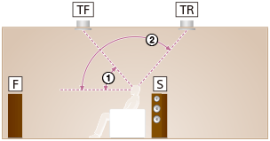 Installez les enceintes aériennes (supérieures) selon les angles présentés ci-dessous.