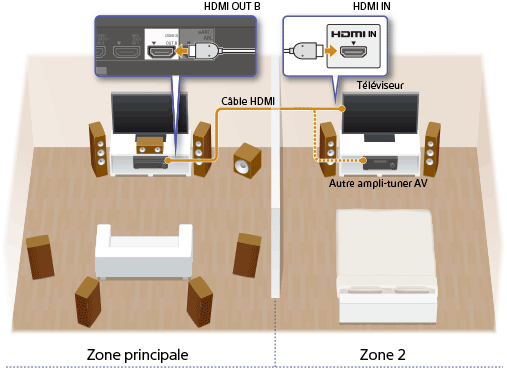 Profiter de la vidéo et du son dans deux emplacements via un raccordement HDMI - Zone 2