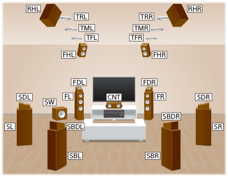 | FDL | Enceinte avant gauche dotée de la fonctionnalité Dolby Atmos |