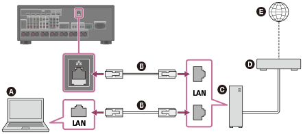 L'illustration suivante est un exemple de configuration de réseau domestique avec l'ampli-tuner et un ordinateur.