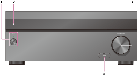 (marche/veille)Permet de mettre l'ampli-tuner sous tension ou de le régler en mode veille. Le témoin s'allume en fonction de l'état de l'ampli-tuner. En outre, la couleur du témoin change en fonction de l'état de l'ampli-tuner.