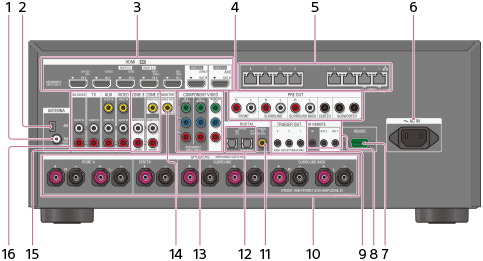 - Vous pouvez commander l'ampli-tuner à distance en raccordant un répéteur IR (non fourni) sur la prise IR REMOTE IN.