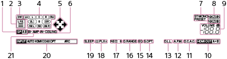S'allume lorsque [SB Speaker Assign] dans le menu Speaker Setup est réglé sur [Bi-Amp] pour utiliser une connexion à bi-amplificateur.