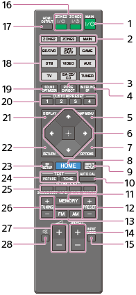 Affiche le menu permettant d'utiliser l'ampli-tuner sur le panneau d'affichage.