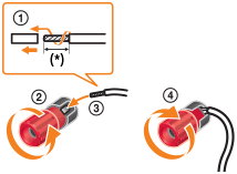 - Asegúrese de no eliminar demasiado del revestimiento de los cables de los altavoces, para evitar que los hilos de los cables de los altavoces se toquen entre sí.