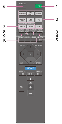 Cambia la emisión de dos televisores conectados a las tomas HDMI OUT A (TV) y HDMI OUT B/HDMI ZONE. Cuando [HDMI Out B Mode] está ajustado a [Main] en el menú [HDMI Settings], la emisión alterna entre [HDMI A], [HDMI B], [HDMI A+B] y [HDMI OFF] cada vez que se presiona el botón. Cuando [HDMI Out B Mode] está ajustado a [Zone], la emisión alterna entre [HDMI A] y [HDMI OFF] cada vez que se presiona el botón. -