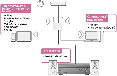 Puede disfrutar reproduciendo contenido de audio en alta calidad desde una computadora o HDD de red, o un iPhone/iPad/iPod u otro smartphone o tableta conectados a su red doméstica inalámbrica o con cables.