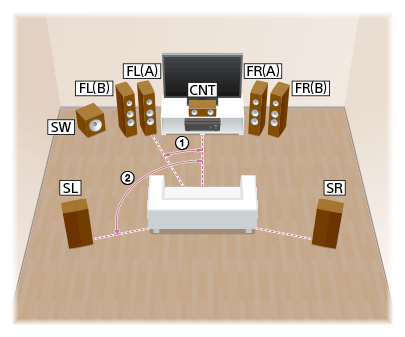 Puede emitir sonido por los altavoces A delanteros o los altavoces B delanteros o por ambos altavoces A delanteros y altavoces B delanteros.