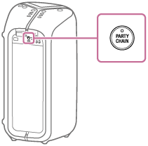 Start avspillingen, og så trykker du på PARTY CHAIN på baksiden av systemet.