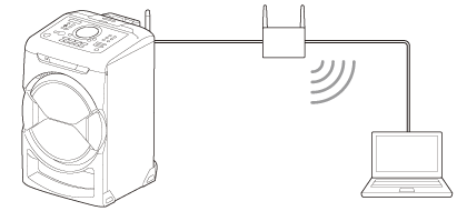 - Ligue o router sem fios à porta de LAN do sistema de áudio em casa com um cabo de LAN (não fornecido).