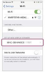 Se o iPhone/iPod touch tiver o iOS 8 ou posterior, o sistema de áudio em casa pode ser ligado à mesma rede Wi-Fi que o iPhone/iPod touch. As definições de rede Wi-Fi do sistema de áudio em casa são efetuadas pelo iPhone/iPod touch.