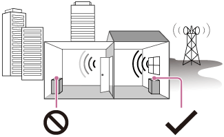 Má receção: Afastado das janelas, entre edifícios, etc.