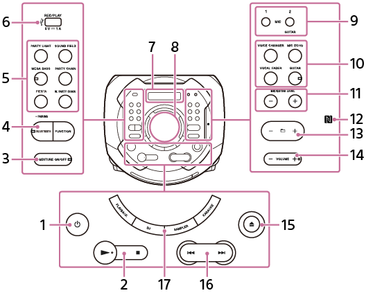 (αναπαραγωγή) και VOLUME + έχουν μια ανάγλυφη κουκκίδα. Χρησιμοποιήστε την ανάγλυφη κουκκίδα ως σημείο αναφοράς κατά τον χειρισμό του συστήματος.