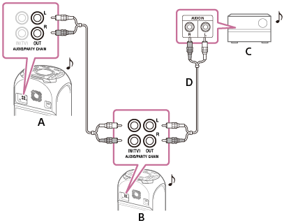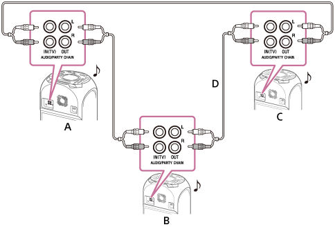 Ρυθμίστε ένα Ενσύρματο Party Chain συνδέοντας όλα τα συστήματα με τη χρήση καλωδίων ήχου (δεν παρέχονται).