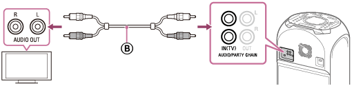 Du kan også koble lydinngangskontaktene til valgfritt utstyr (VCR osv.) til AUDIO/PARTY CHAIN OUT L/R-kontaktene. Du finner flere detaljer i bruksanvisningen til utstyret.