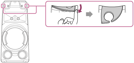 Anda boleh meletakkan mikrofon (tidak dibekalkan) di pemegang mikrofon. Untuk menggunakan pemegang mikrofon, bukakannya dengan jari anda seperti ditunjukkan di bawah.