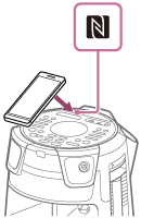 Hvis du plasserer systemet mot en NFC-kompatibel enhet slik som en smarttelefon, slår systemet seg automatisk på og kobler seg til med BLUETOOTH automatisk.