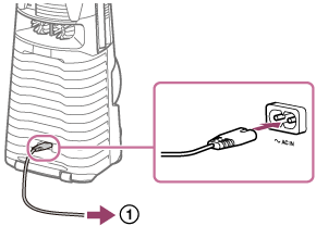 Koble enden av strømledningen (nettledningen) (medfølger) til AC IN-kontakten på baksiden av enheten, og deretter støpselet til stikkontakten (