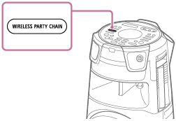 Den följande operationen är ett exempel på hur MHC-V73D ställs in som det första systemet. Vi hänvisar till bruksanvisningen som medföljde enheten som du använder för att ställa in övriga enheter kompatibla med funktionen trådlöst Party Chain.
