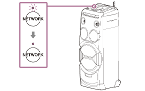 يضيء مؤشر التيار باللون الأخضر، من ثم يبدأ المؤشر NETWORK في الوميض باللون الأبيض. انتظر لحوالي دقيقتين (في بعض الحالات، 4 أو 5 دقائق) إلى أن يضيء