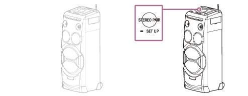 SET UP de l’autre système audio de salon et maintenez-la enfoncée jusqu’à ce que vous entendiez un bip ou des instructions vocales vous indiquant que vous pouvez commencer à régler la fonction.Cette opération doit être terminée dans les 30 secondes qui suivent l’appui sur la touche STEREO PAIR/