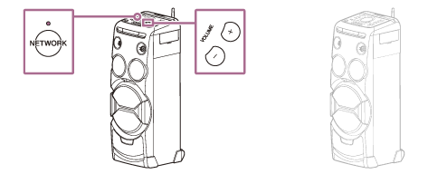 - Sur le système audio de salon dont le témoin NETWORK est éteint, vous ne pouvez utiliser que la touche VOLUME +/–, la touche
