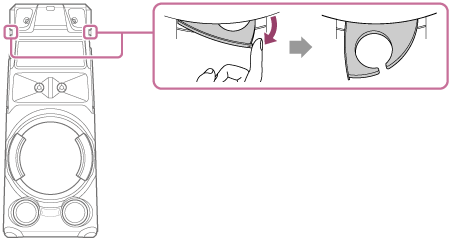 Puteți așeza microfoane (nefurnizate) în suporturile de microfon. Pentru a utiliza suportul de microfon, desfaceți-l cu degetul, conform ilustrației de mai jos.