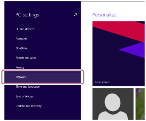 Si vous téléchargez “Sony | Music Center” sur votre smartphone, iPhone, etc., et si vous utilisez un PC Windows 8.1, exécutez la procédure de la section «Configuration de votre PC en vue de son utilisation à partir d’un smartphone, iPhone, etc., faisant office de contrôleur (Windows 8.1)».
