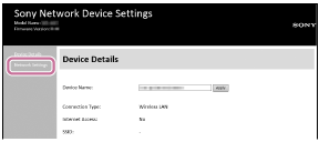 Affichez l’écran [Sony Network Device Settings].