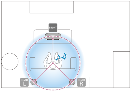 Existují dva způsoby, jak reproduktorový systém používat změnou umístění předního a zadního reproduktoru, a to v závislosti na prostředí sledování a obsahu.