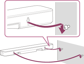 Dopasuj otwory z tyłu głośnika Bar Speaker do śrub, a następnie powieś głośnik Bar Speaker na dwóch śrubach.