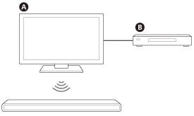 - Při propojení reproduktorového systému a televizoru pomocí funkce BLUETOOTH na televizní obrazovce nelze zobrazit ovládací obrazovku reproduktorového systému, například hlavní nabídku. Mimo to také nelze používat jiné funkce reproduktorového systému, než je poslech zvuku z televizoru nebo ze zařízení, které je k televizoru připojeno.