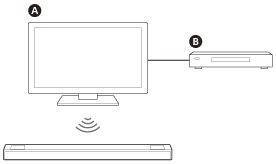 - Si vous connectez le système d’enceintes et le téléviseur à l’aide de la fonction BLUETOOTH, vous ne pouvez pas afficher l’écran de commande du système d’enceintes tel que le menu d’accueil sur l’écran du téléviseur ; vous ne pouvez pas non plus utiliser des fonctions du système d’enceintes autres que la fonction d’écoute du son du téléviseur ou du dispositif connecté au téléviseur.