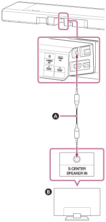 Kösse össze a TV-n található a S-CENTER SPEAKER IN aljzatot a hangszórórendszeren található S-CENTER OUT aljzattal a középső TV-hangszóró üzemmód kábelével (mellékelve).