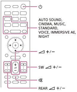 - Se si seleziona un ingresso diverso da TV sul telecomando in dotazione con il sistema diffusori, l’audio del televisore non viene emesso dal sistema diffusori. Per emettere l’audio del televisore, premere TV sul telecomando per cambiare all’ingresso TV.