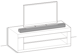 将无线家庭音箱安装在与电视机相同的位置。无线家庭音箱可以安装在架子上(如电视机架)或安装在墙壁上。