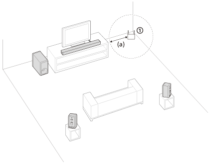 将扬声器系统、可选后置扬声器和重低音音箱安装在距离无线LAN路由器等设备1.5 m或以上的位置。