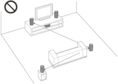 - إذا كان هناك أي عائق بين مكبرات الصوت أو إذا كان الميكروفون لقياس مكبر الصوت مسدوداً بعائق، فلا يمكن تنفيذ Sound Field Optimization بشكل صحيح. قم بإزالة أي عائق بين مكبرات الصوت أو أمام مكبرات الصوت، إن وجد.